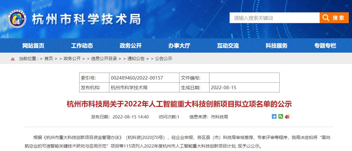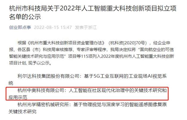 載譽前行 | 中奧科技榮登“2022年度杭州人工智能重大科技創新項目”名單