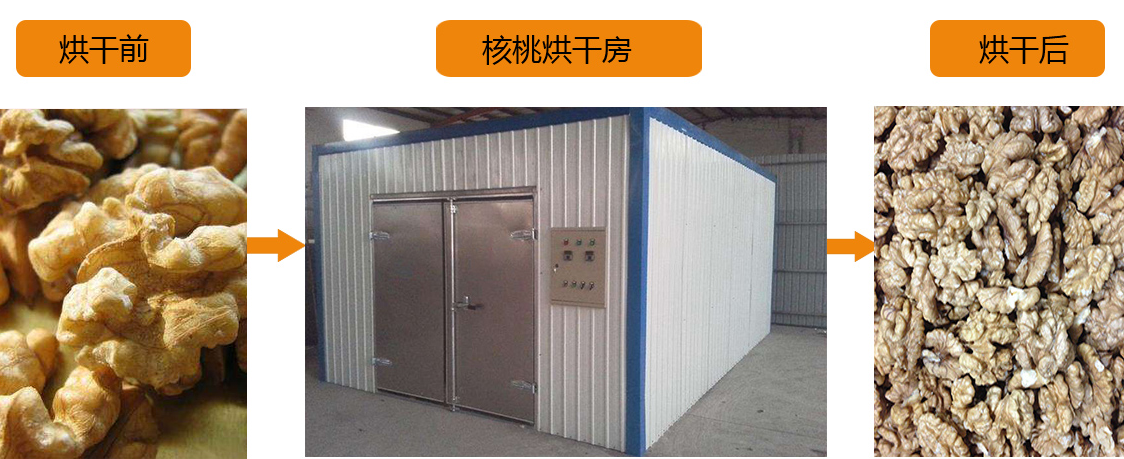 3、核桃烘干機不論顏色和質量都比在天氣曬干的要好,增加了客戶的收入。