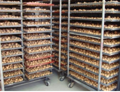 - 此時經過前期的階段升溫,可將烘房溫度設置為70℃。持續運行2小時左右。此時打開門,觀察物料的外觀、干燥程度。待物料有8-9成干時,即可關閉加熱主機,烘房溫度回溫至室溫時即可將烘房內的推車取出,將干制后的成品取出。